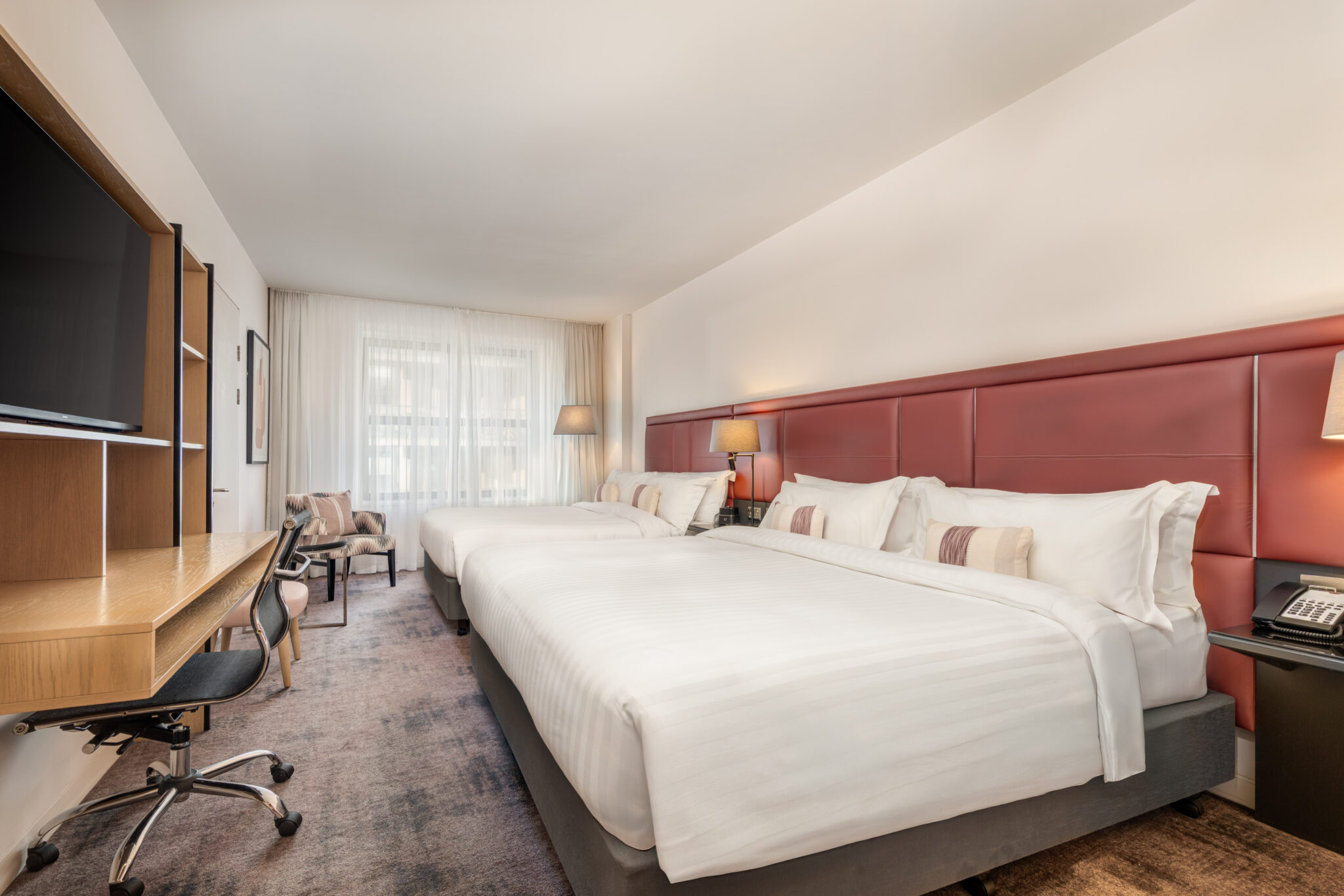 Our Deluxe King Rooms offer even more space and indulgence than our Superior Rooms, complete with luxurious amenities like fluffy robes and slippers. Perfect for longer stays and special occasions. For an extra touch of luxury, consider upgrading to one of our Deluxe Balcony Rooms and enjoy stunning views of the Dublin skyline from the comfort of your room.